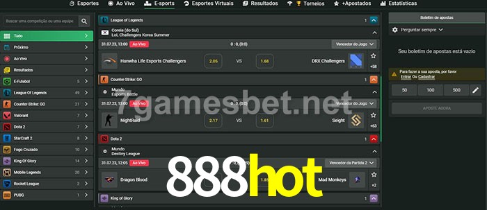 O 888hot oferece uma grande seleção de opções de apostas em e-sports com probabilidades competitivas
